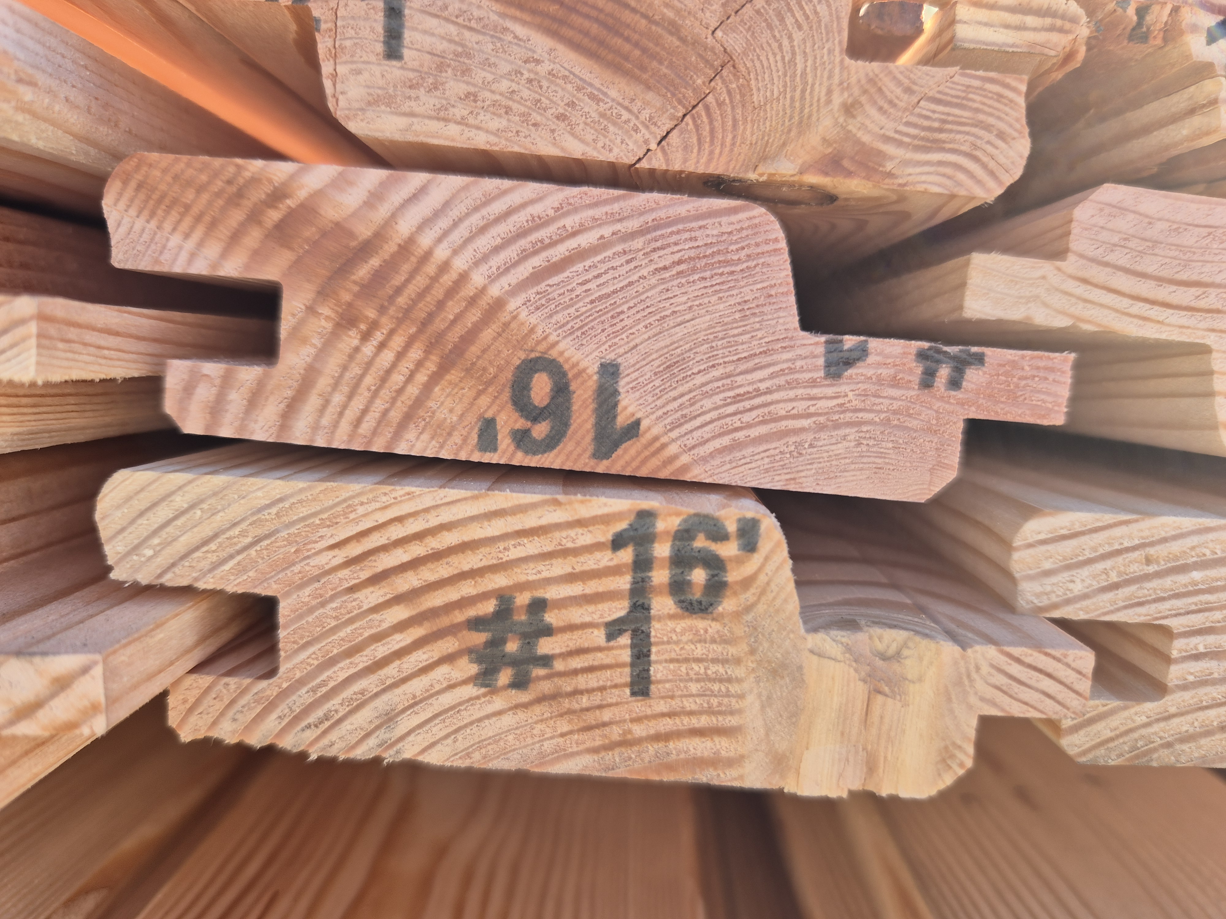 kanad. Lärche, B-Sort, HS 154, Nordwand mit Nut & Feder, Sichts. gehobelt