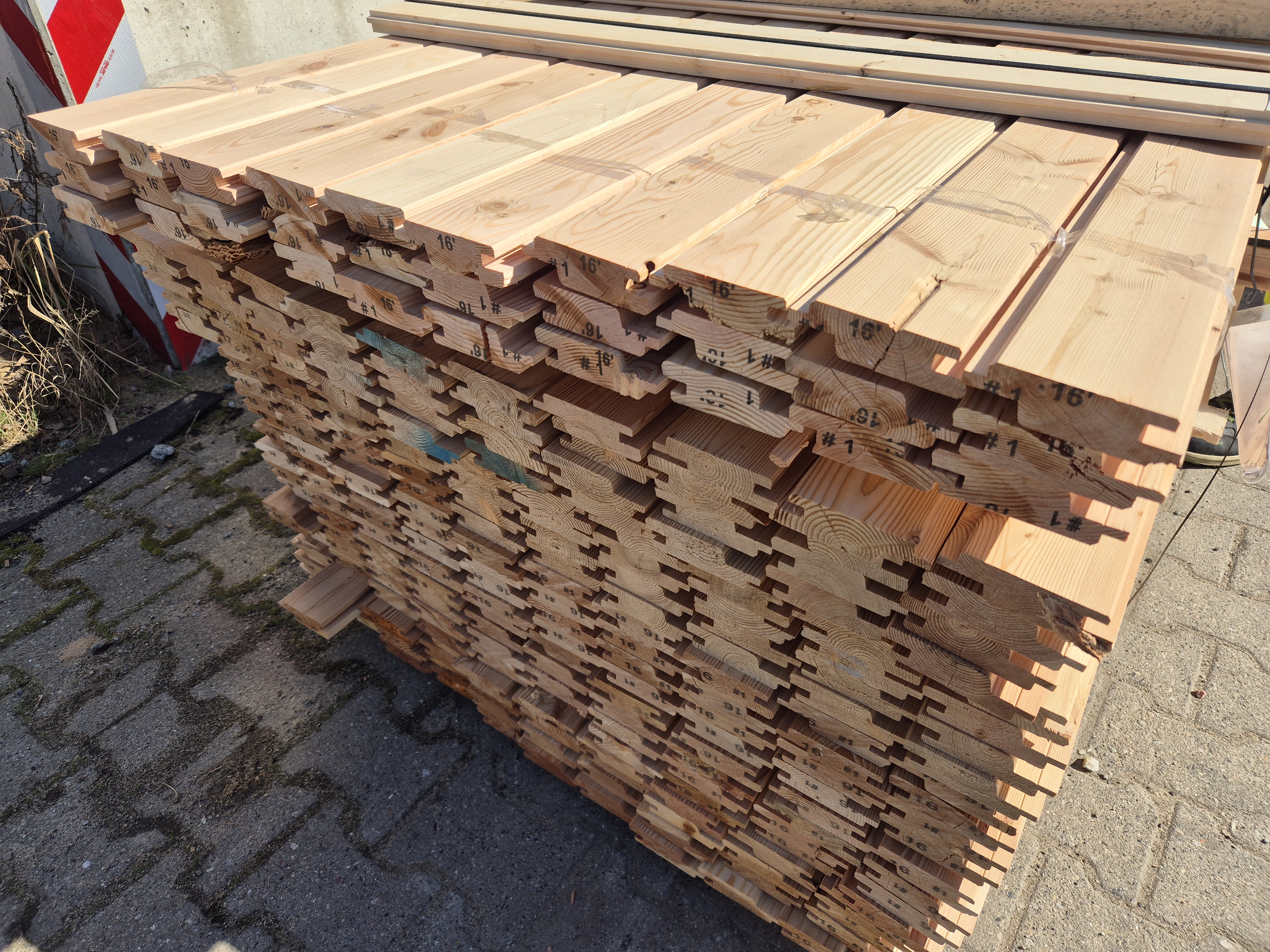 massiv, gehobelt, mit Nut und Feder, Holzfeuchte ca. 16 - 18 %