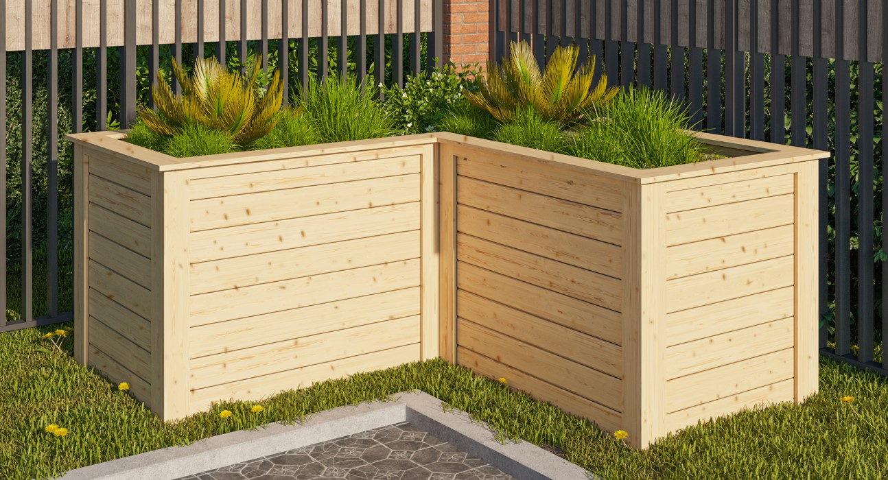 Das Hochbeet in besonderer L-Form besteht aus 28 mm starken Wandbrettern der nordischen Fichte und ist durch das einfache Steck- und Schraubsystem schnell montiert. Die mitgelieferte Gewindestange sorgt für die notwendige Stabilität.