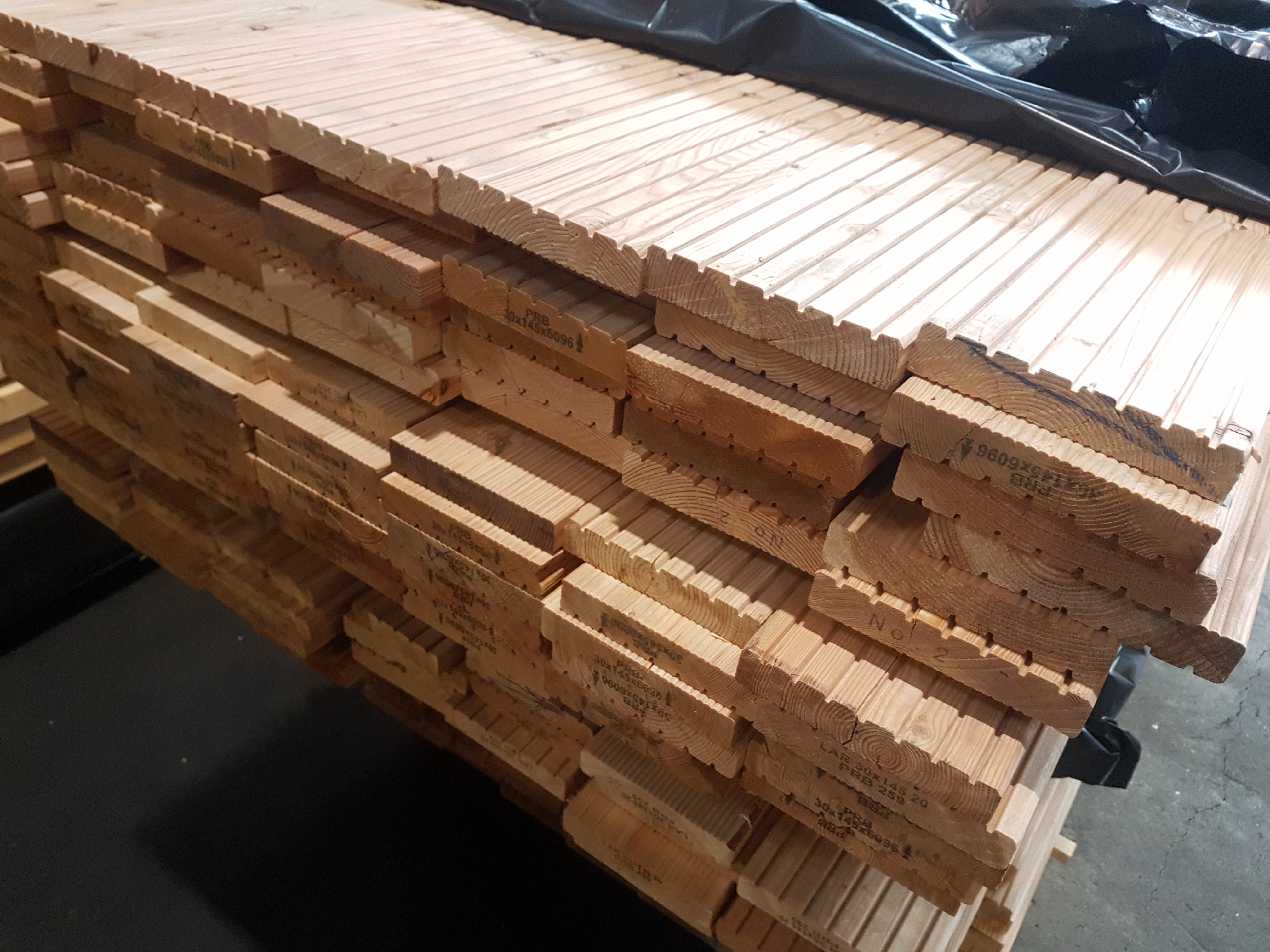 kanad. Lärche, B-Sort., HS 307/309, Terrassendiele, eins. geriffelt / eins. gezahnt