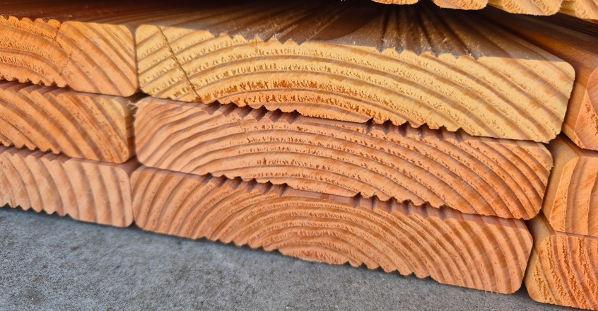 Terrassendiele, französisches Profil (beidseitig fein geriffelt mit einem Steg)